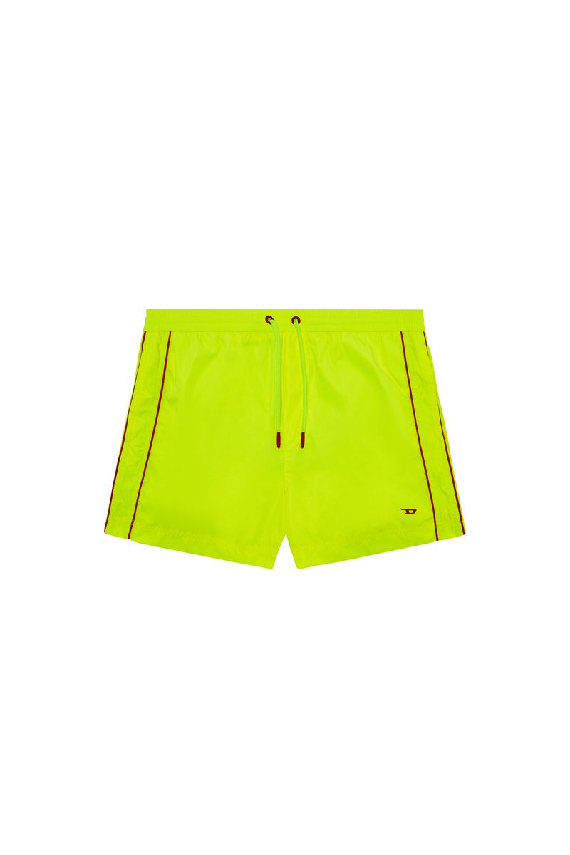 Shorts masculino feito de tecido reciclado leve e de secagem rápida. Traçado com debrum esportivo nas laterais, este par de comprimento médio tem cintura ajustável por cordão, ilhós para drenagem de água e forro para conforto. Um pequeno logotipo D vermelho marca a frente.