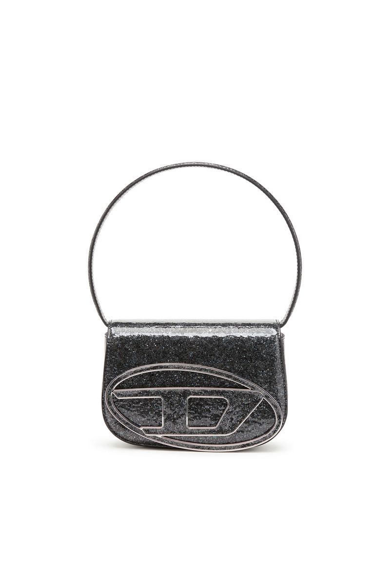 Esta bolsa brilhante é um dos acessórios exclusivos da Diesel. Coberta com glitter macro cintilante e revestida para um acabamento perfeitamente liso, o modelo apresenta uma alça de ombro e uma alça transversal opcional. A placa oval D de metal, com glitter tonal, torna a bolsa instantaneamente reconhecível.