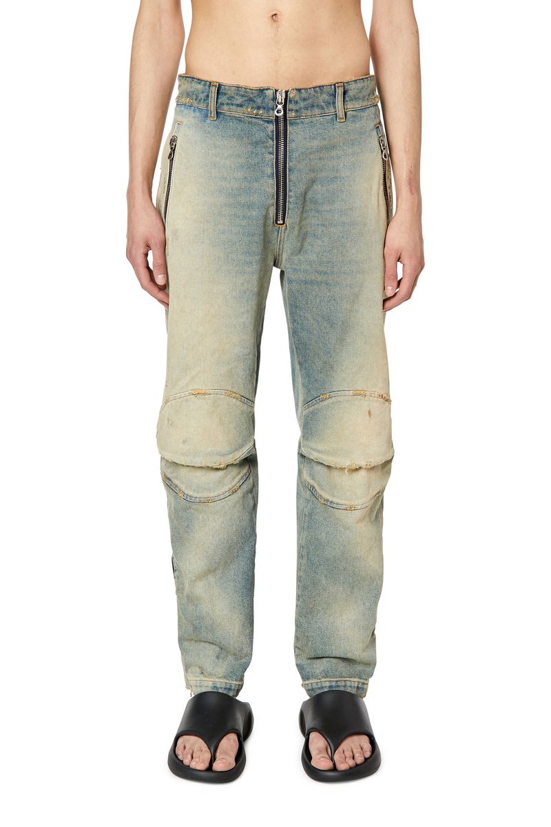 Replicando o jeans vintage desbotado pelo sol, esta lavagem de tecido fixo apresenta um tom azul médio com áreas distintamente mais claras e desgastadas. Este efeito “solarizado” é obtido através de engenhosos revestimentos em spray e processos de lavagem e sujidade feitos à mão.