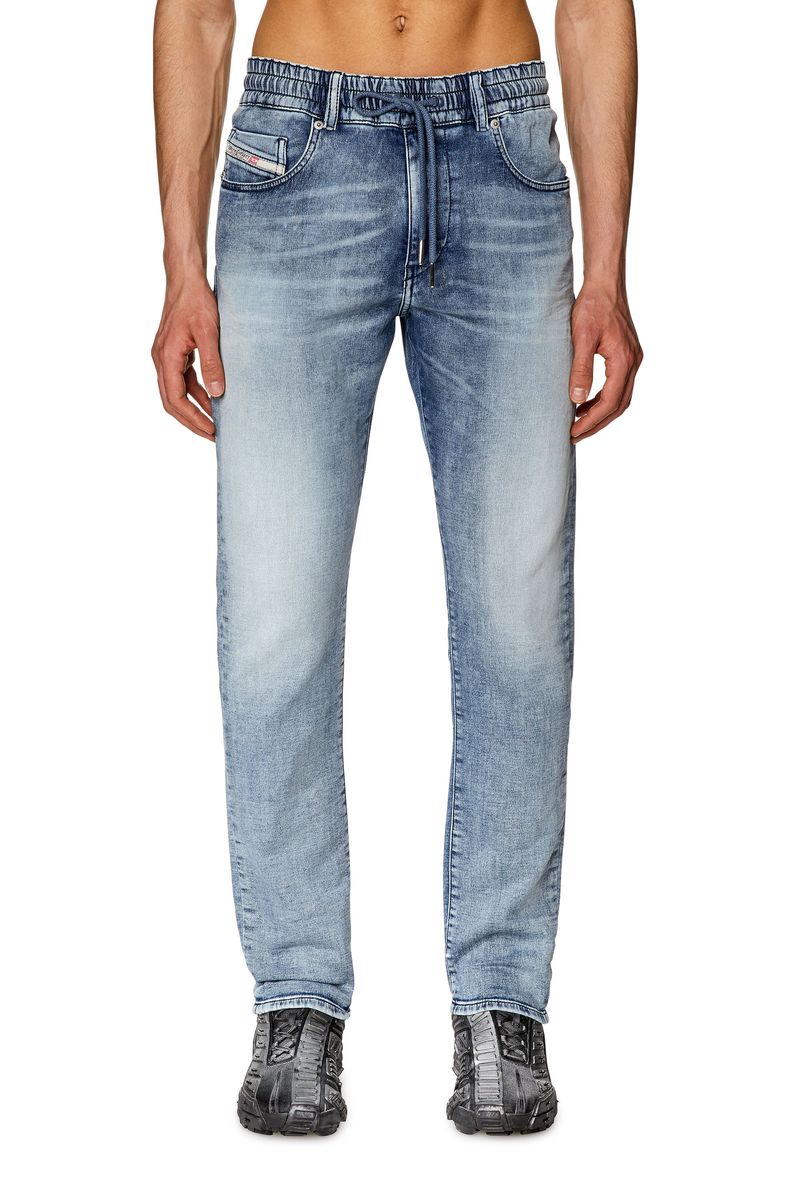 Apresentando uma lavagem azul média com bigodes visíveis e efeitos usados. Acabamento com costura tonal e logotipo D bordado no bolso.