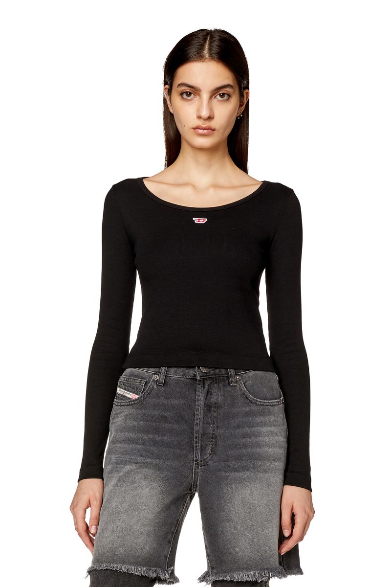 Top feminino Diesel de mangas compridas construído para um ajuste fino em jersey de algodão elástico. Um pequeno patch 'D' bordado embeleza o peito.