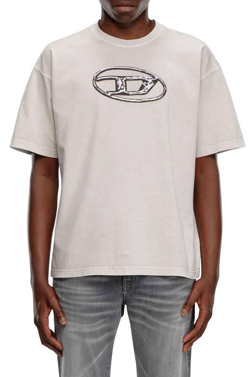 Esta camiseta masculina de jersey é confeccionada em algodão orgânico. Tingida com pigmentos e levemente desbotada, ela apresenta uma estampa do logotipo oval multicamadas na frente – o acabamento é levemente elevado e bufante em alguns pontos. O corte folgado e quadrado facilita o uso.