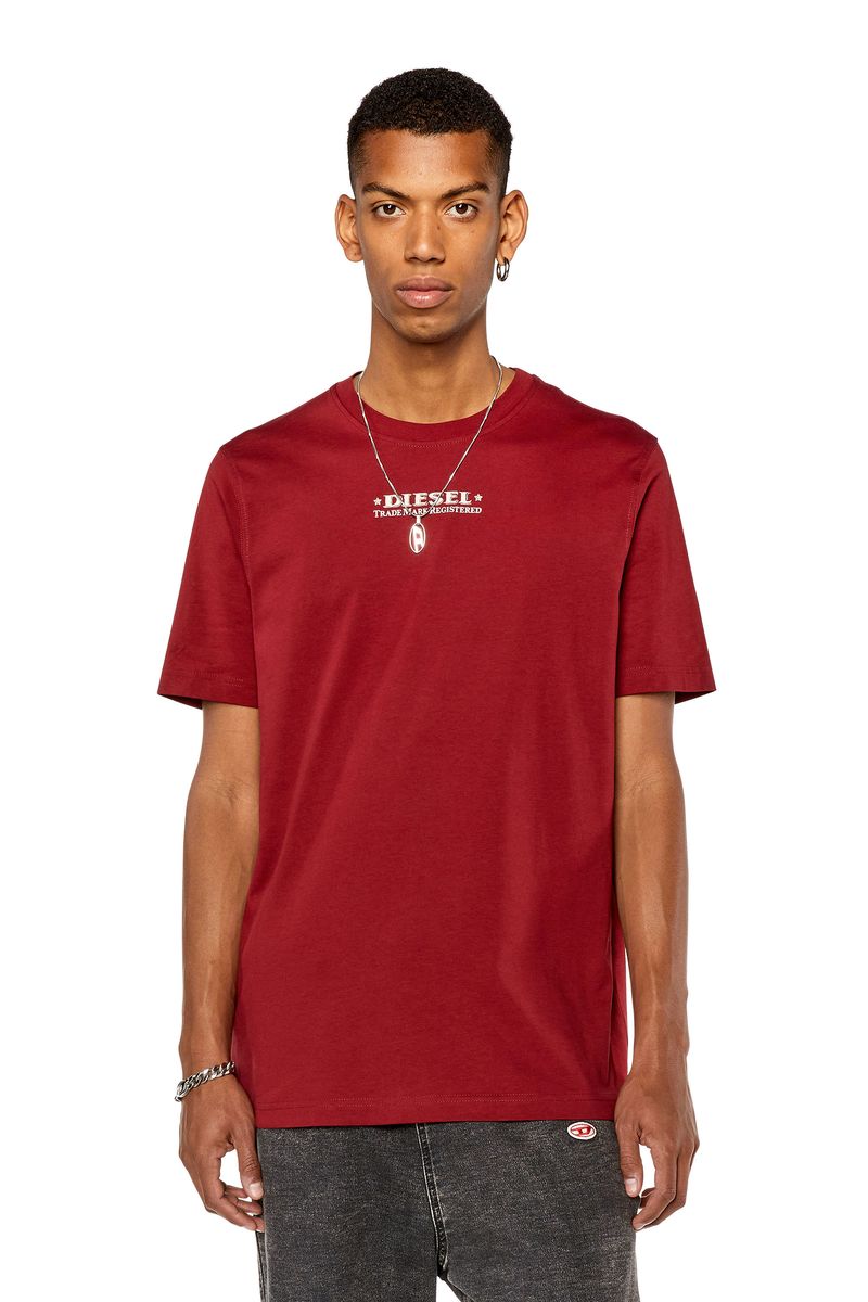 Esta camiseta masculina da Diesel de ajuste regular é feita de algodão macio. Embelezado com estampas registradas da marca Diesel no peito e nas costas.