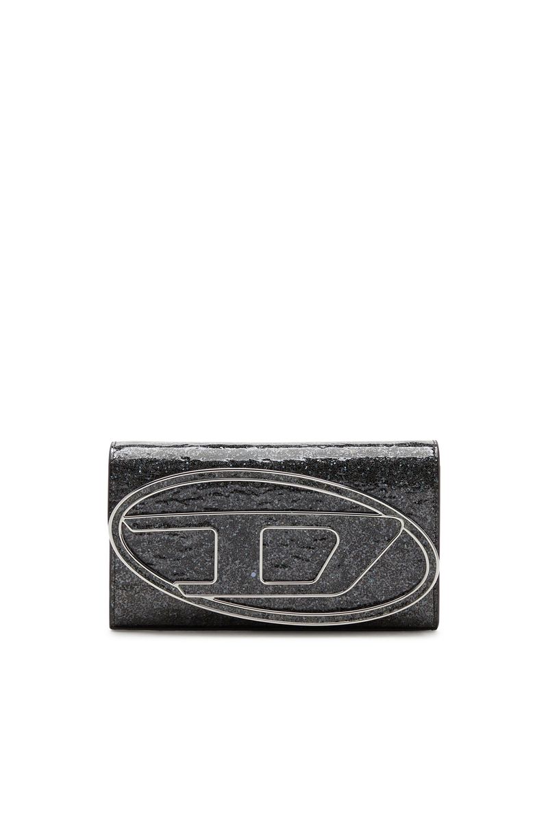 Esta carteira maxi também funciona como uma minibolsa graças à alça removível. Decorada com a placa oval D exclusiva que identifica a icônica bolsa 1DR, ela apresenta um acabamento liso e brilhante.