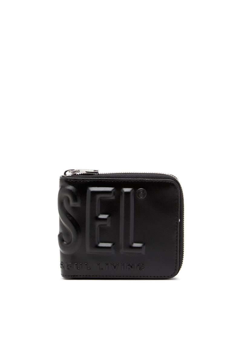 Carteira compacta masculina em couro napa, com uma versão jumbo do logotipo Diesel Biscotto em relevo. Com fecho de correr seguro em toda a volta, este acessório pode acomodar cartões e notas e possui um compartimento para moedas.