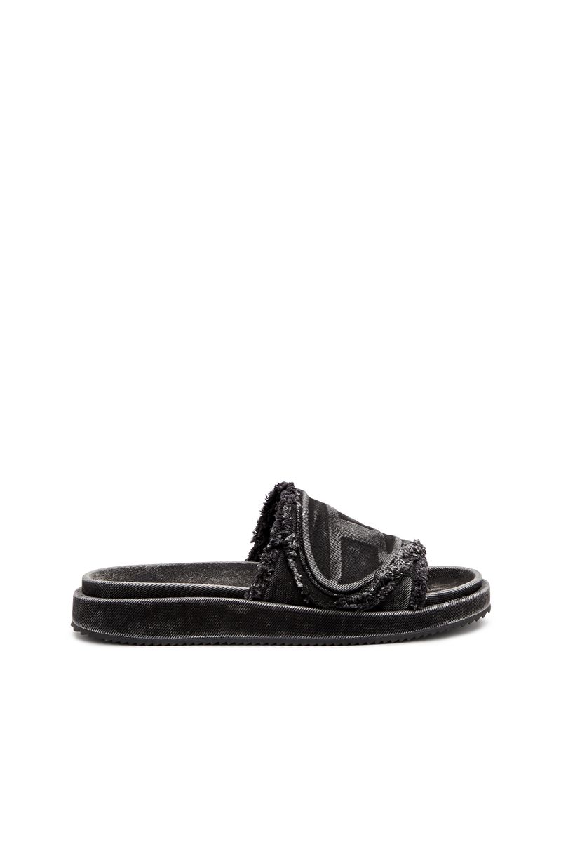 Feita para todos os gêneros, estas sandálias são totalmente revestidas em ganga Diesel e apresentam um logótipo Oval D em relevo na tira larga e ajustável – repare nos detalhes desfiados e no efeito desbotado. A palmilha ergonómica e a sola serrilhada garantem conforto e aderência.