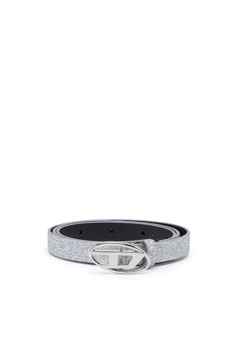 Este cinto feminino tem uma silhueta esbelta e um acabamento brilhante. É confeccionado com materiais sintéticos e fecha com fivela Oval D de metal polido.