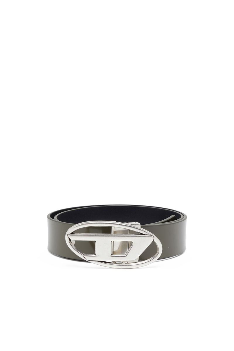 Este cinto masculino é reversível, apresentando couro fosco de um lado e couro brilhante do outro. Elevado com fivela de metal Oval D.