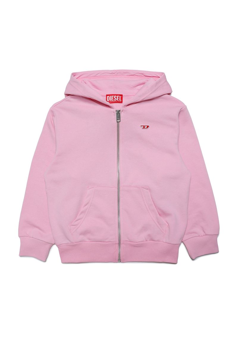 Moletom infantil de algodão com zíper em toda a extensão e bolsos estilo canguru. Um pequeno logotipo 'D' bordado completa este design sem gênero.