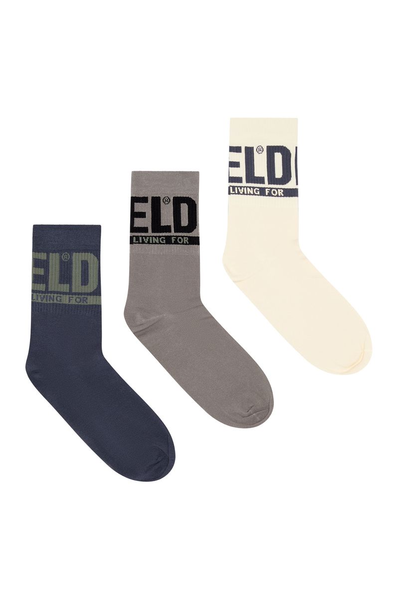 Kit de três meias de corte médio. Cada par é feito de uma mistura de algodão macio e elástico e apresenta o logotipo da Diesel e o slogan For Successful Living nos punhos canelados.