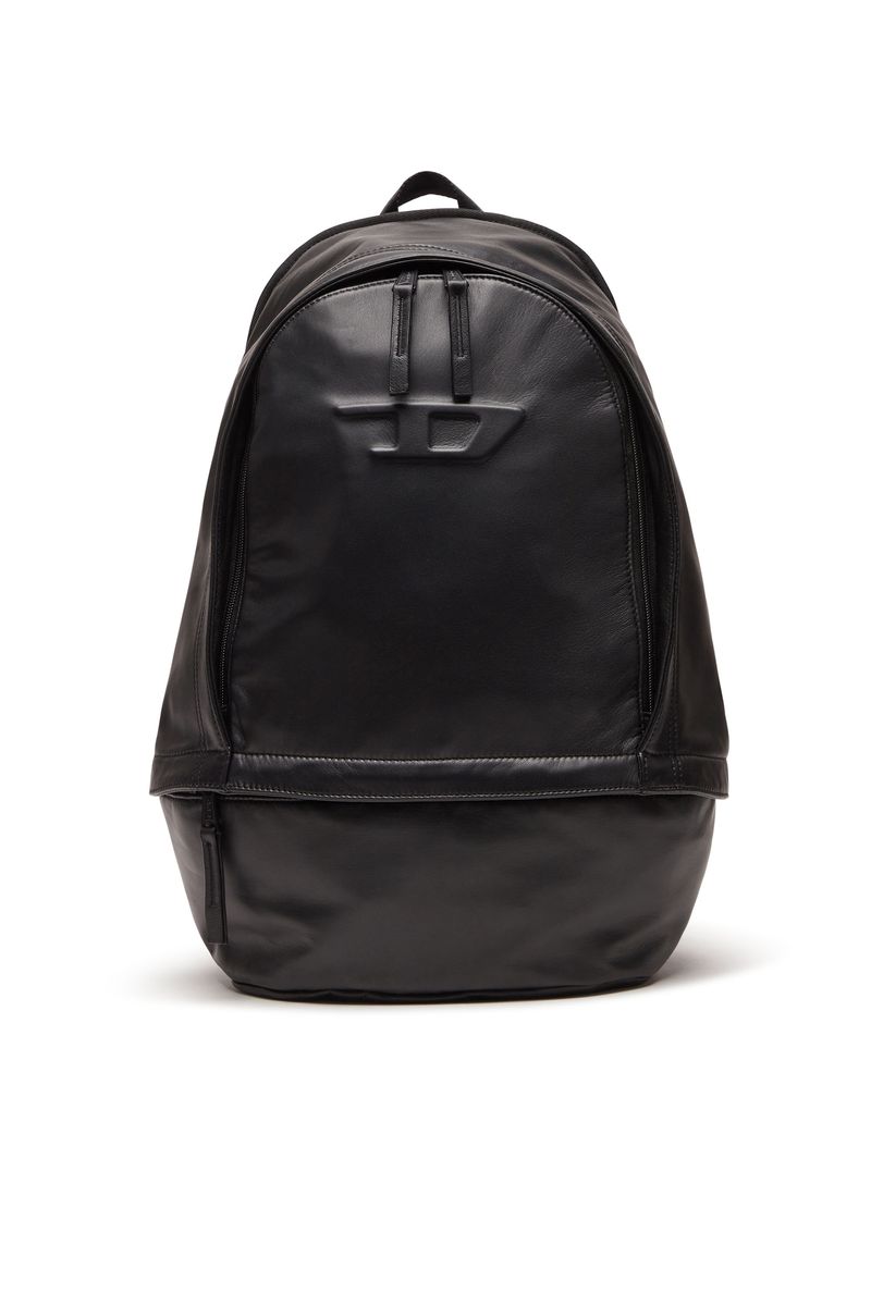 Mochila Diesel com superfície exterior de couro natural e material têxtil. Essa mochila tem design minimalista com o logo D da Diesel marcado.