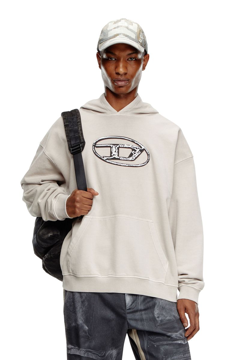 Este moletom masculino de algodão tem um leve desbotamento e um corte relaxado e levemente quadrado. O icônico logotipo oval D que adorna a parte frontal é uma estampa em relevo e multicamadas que reforça o visual descolado e desgastado do moletom.