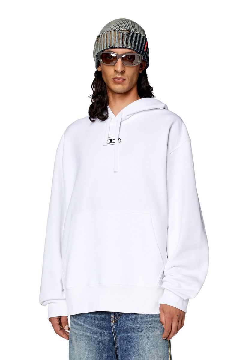 Moletom com capuz folgado para homem em jersey de algodão loopback. Este estilo é definido pelo logótipo “oval D” – esta versão prateada foi criada através de uma técnica de moldagem por injeção – e finalizado com um cordão alongado no capô.
