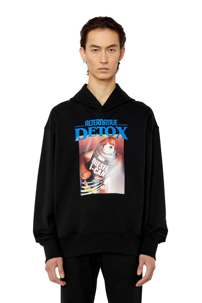 Moletom masculino folgado com capuz de algodão, estampa “Diesel I-Can” na frente e escrito nas costas. Logotipo gravado na manga.
