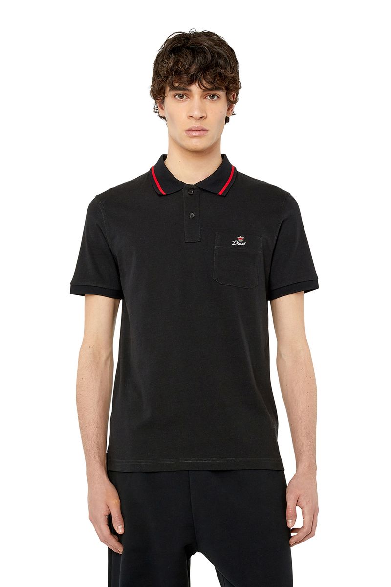 Camisa polo masculina confeccionada em algodão orgânico. Este estilo justo é detalhado com listras esportivas na gola e um sutil emblema da coroa e letras Diesel bordadas no bolso.