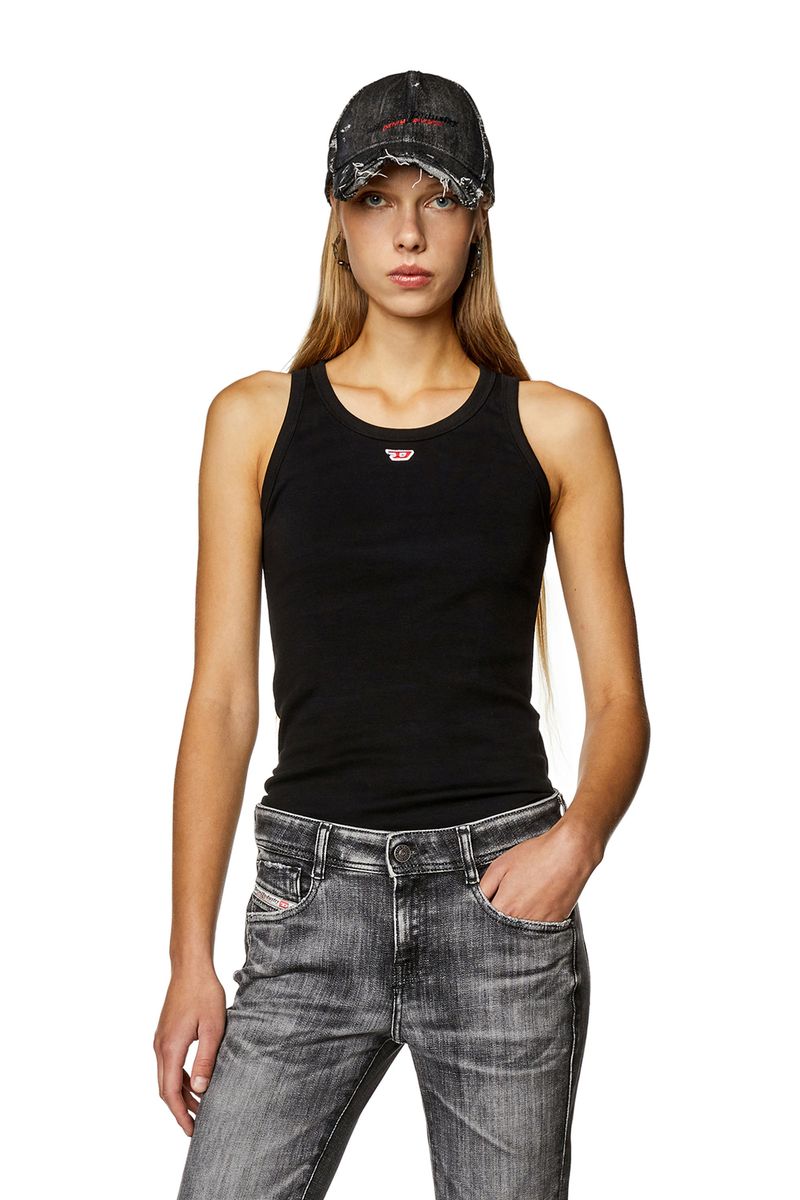Camiseta regata feminina Diesel confeccionada em jersey de algodão elástico. Marca com um mini patch 'D' bordado no peito.