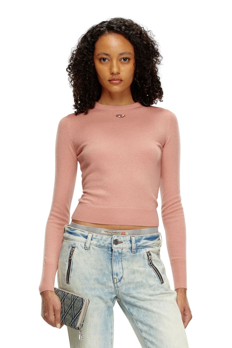 Esta blusa feminina de malha é confeccionada com lã de origem responsável, enriquecida com bastante cashmere reciclado. Possui modelagem justa e mangas compridas. O logotipo oval D recortado e bordado revela toques de pele logo abaixo do decote.
